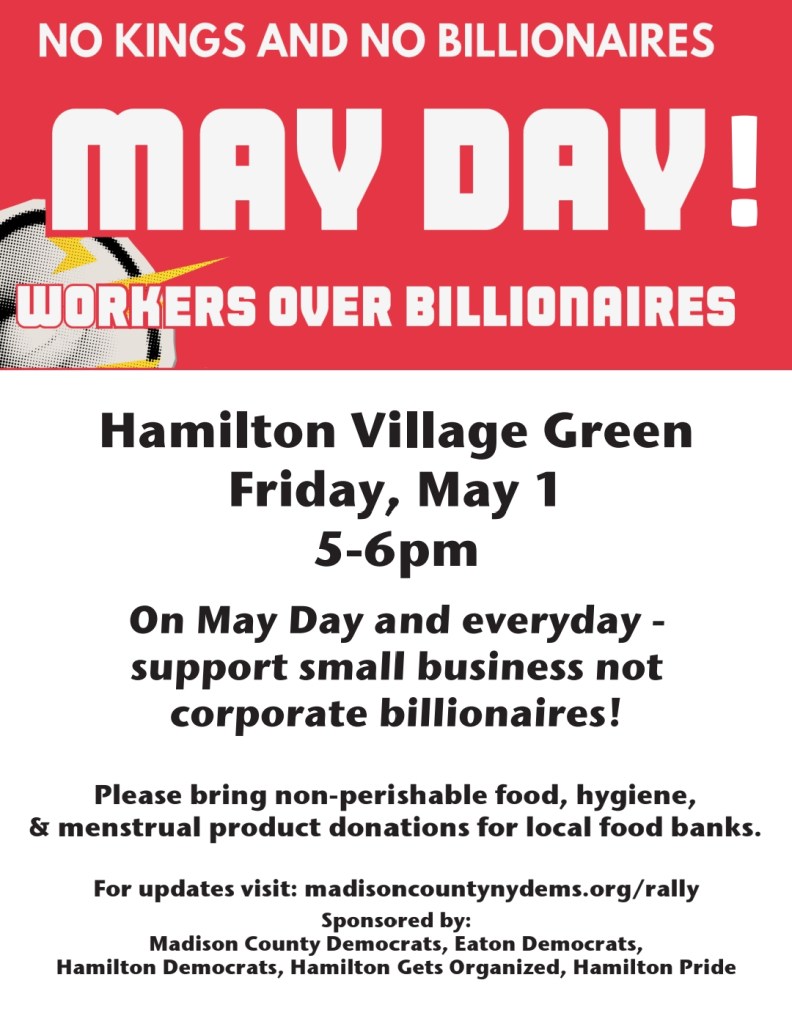 May 1 General Strike : No Work, No School, No Shopping in support of unions -workers over billionaires. No ICE, No war, No kings.