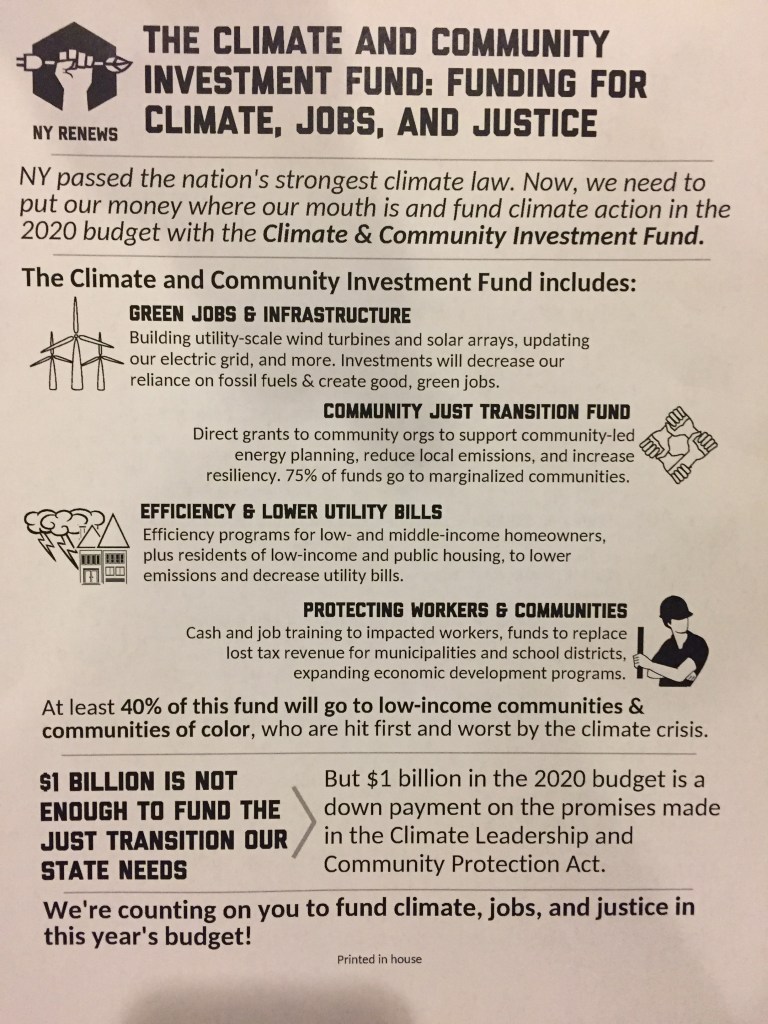 Support THE CLIMATE AND COMMUNITY INVESTMENT ACT needed to implement the CLCPA